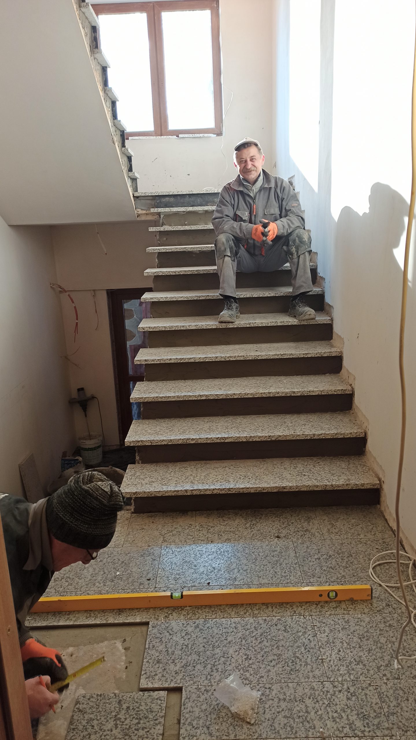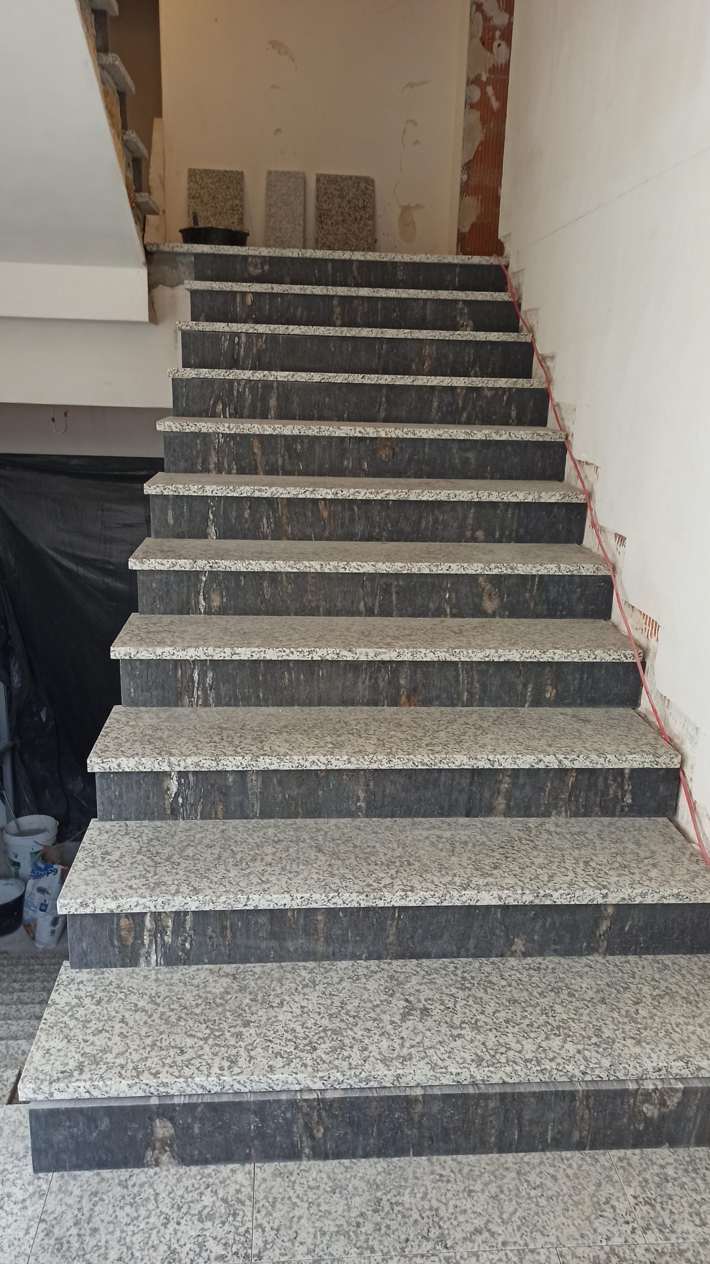Stopnie na drugiej klatce schodowej już prawie ułożone do końca, podstopnice również, Teraz tylko cokoliki, półpietra i będzie pięknie!