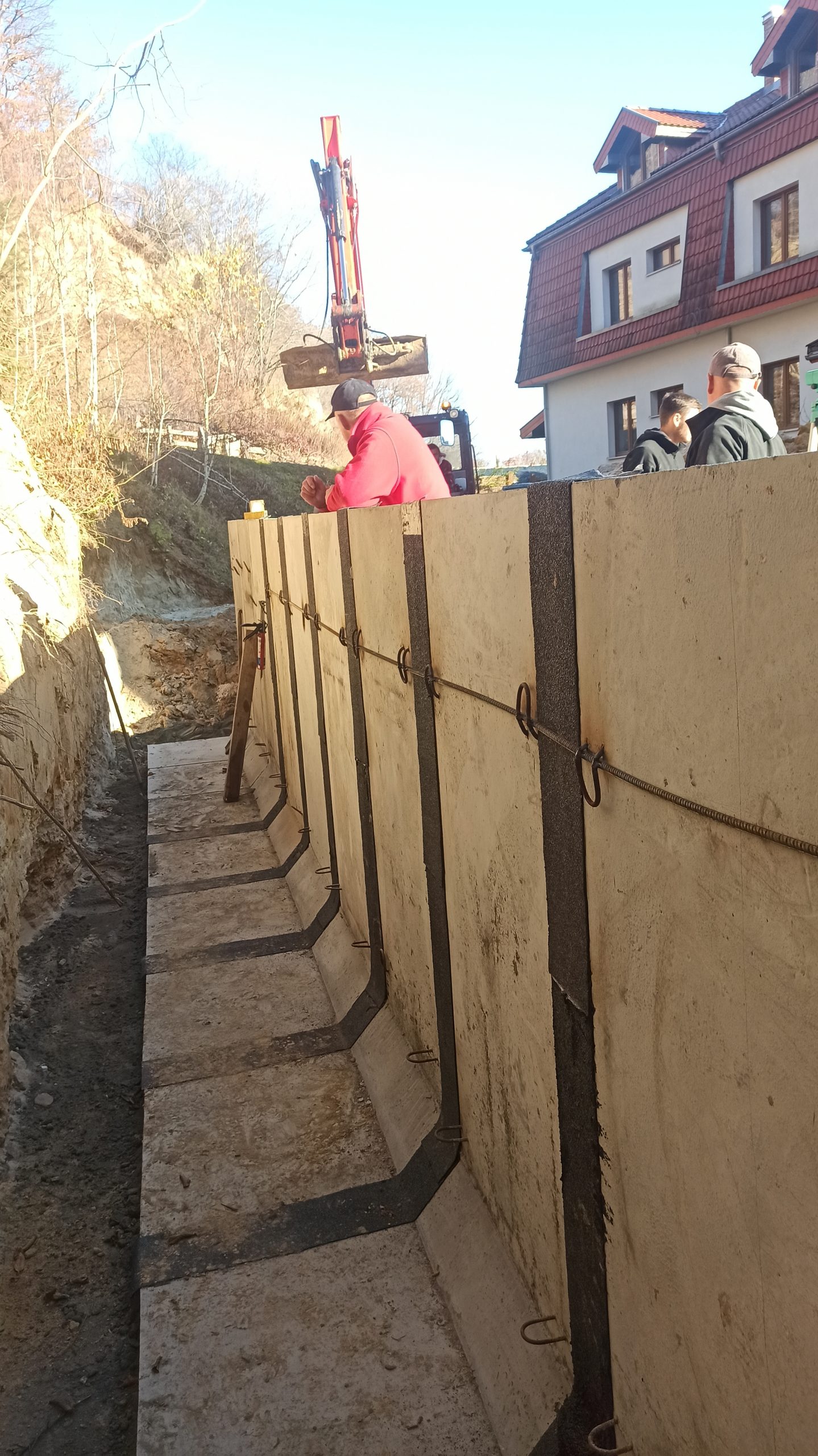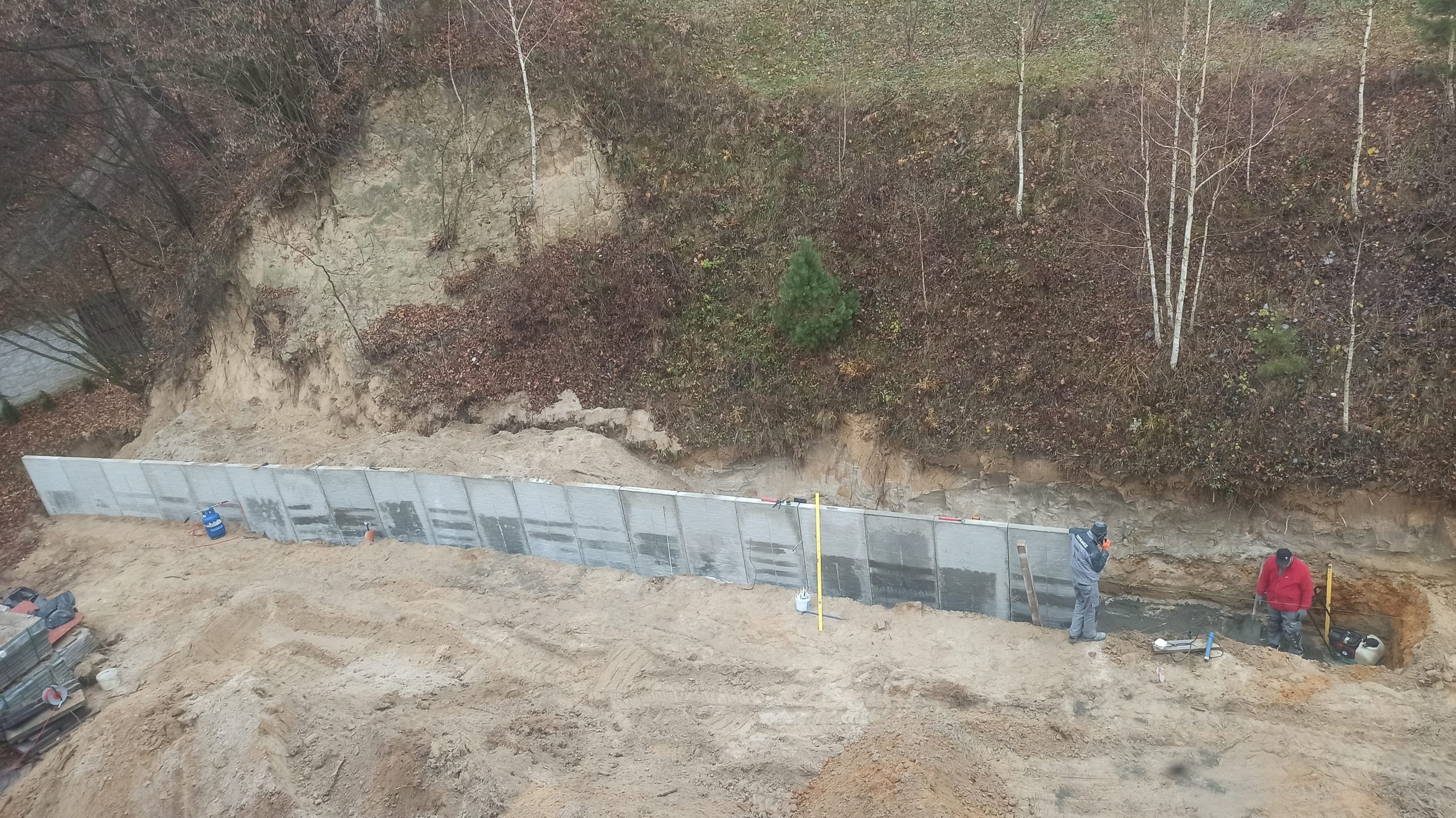 Wokół naszego Domu wznosi się skarpa lessowa. Jest piękna, ale może być również zagrożeniem. Dlatego też stawiamy mur oporowy, który zapewni bezpieczeństwo. Szczególnie jest to ważne w miejscach, gdzie będą przebywać Dzieciaki.